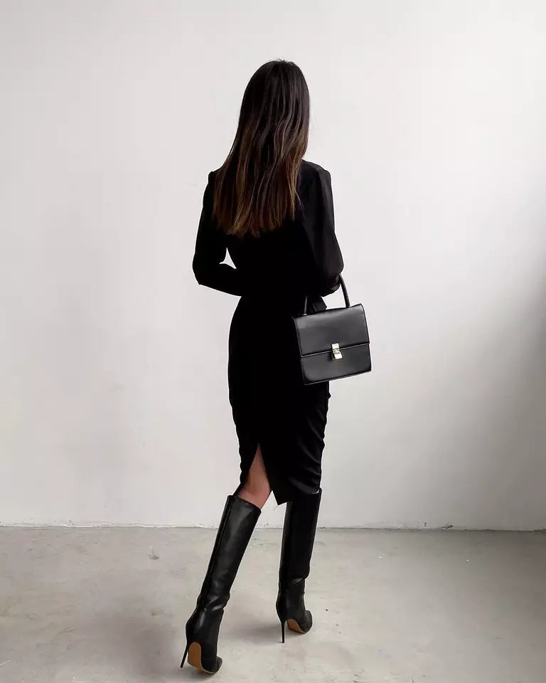Fashion slim dress women's long-sleeved round waist mid length
