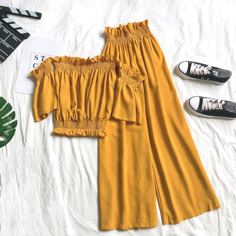 Women's Rain Bow Summer Sleeveless Blouse Shorts Solid Two-Piece Full Length Pants Top + long pants